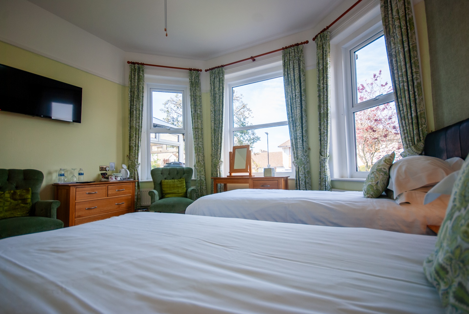 Spacious garden facing superior room with a twin or superking sized bed
